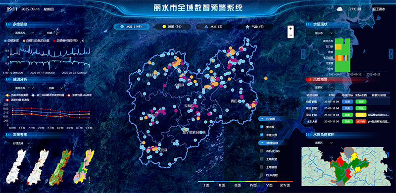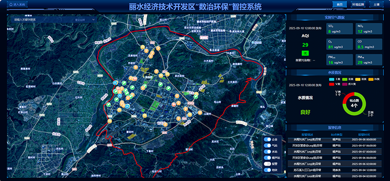2020年,浙江省環(huán)保集團(tuán)麗水生態(tài)環(huán)境科技有限公司以麗水市生態(tài)環(huán)境質(zhì)量監(jiān)測網(wǎng)絡(luò)項(xiàng)目為基石成立,依托先進(jìn)的GIS與數(shù)據(jù)可視化技術(shù),精心打造了全域生態(tài)環(huán)境監(jiān)測預(yù)警系統(tǒng)。該系統(tǒng)共接收474個(gè)站點(diǎn)數(shù)據(jù),其中麗水環(huán)科自建站點(diǎn)329個(gè),實(shí)時(shí)匯聚了全市水域、大氣、噪聲、輻射、雷達(dá)等多元監(jiān)測數(shù)據(jù),日均處理數(shù)據(jù)30萬條,通過智能感知網(wǎng)絡(luò)實(shí)現(xiàn)全要素環(huán)境數(shù)據(jù)的統(tǒng)一管理與協(xié)同分析,使被動(dòng)的環(huán)境治理轉(zhuǎn)向主動(dòng)的環(huán)境預(yù)警。